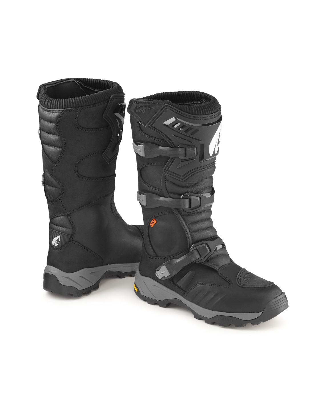 Il comfort è assicurato dalla suola Vibram adventure in gomma a doppia densità, progettata per offrire grip su pedane, asfalto e superfici sterrate. La struttura interna con PP Mid Dual Flex e inserto EVA anti-shock migliora l’assorbimento degli urti durante la guida e la camminata.